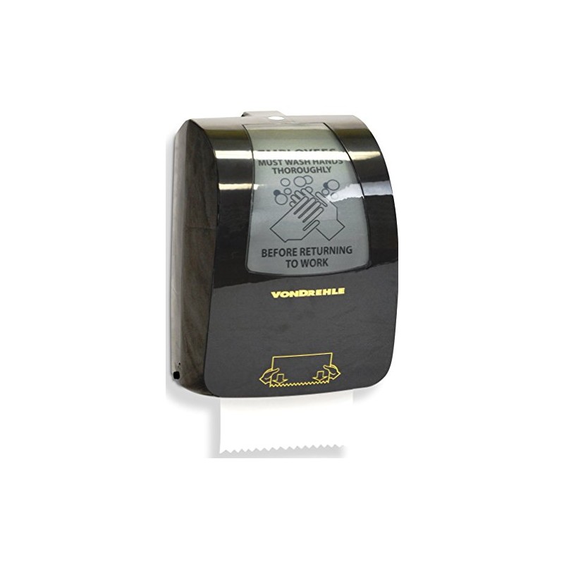 VonDrehle 8864 8" Mechanical Pull-Down Roll Towel Dispenser, Black, Reduced Tabbing to Reduce Waste, Hands-Free Dispensing, Sanitary & Hygienic, ADA Compliant, Low Pull Force, No Batteries to Replace