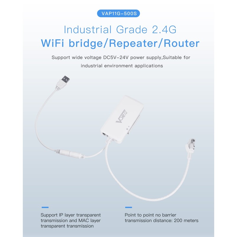 - 【Nueva actualización 2024】 Nuevo diseño de proceso, súper estabilidad. Mini puente/enrutador WiFi industrial de alta potencia de 2.4 GHz/repetidor/punto de acceso inalámbrico/WiFi a Ethernet RJ45, puede lograr la función WiFi a cable o cableado a WiFi. En comparación con el VAP11S, este tiene una antena integrada y es más pequeño, pero todavía tiene una señal fuerte.