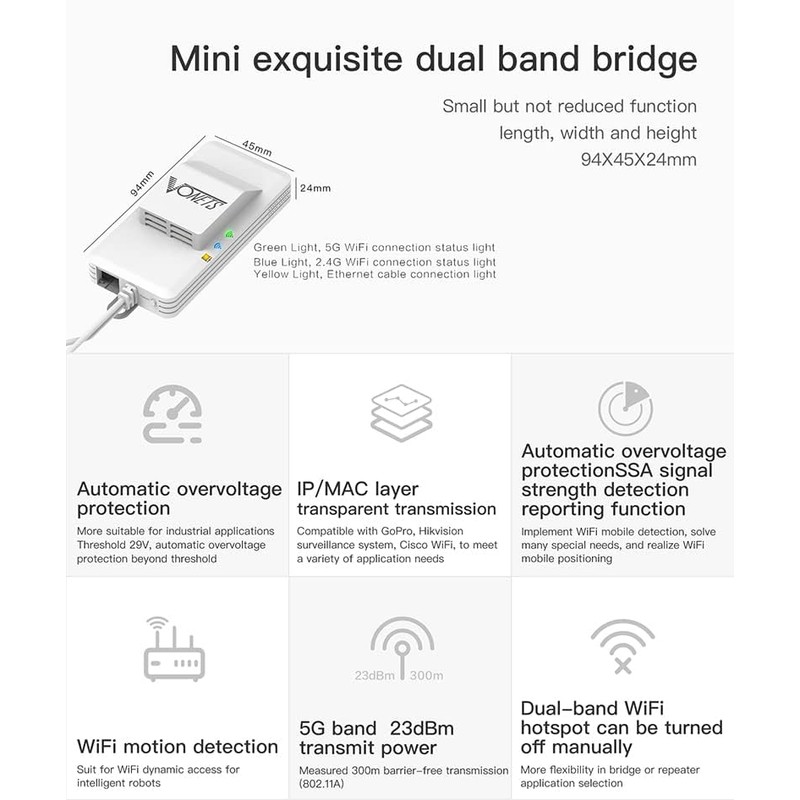 - 【Product Configuration and Technical】WiFi router newly added router function, with two 10/100Mbps LAN ports, WiFi repeater and router working mode that can be switched freely. This wifi ethernet bridge adopts a wide voltage DC5-24V power supply and has two-stage automatic overvoltage protection (with a maximum protection voltage of 29V). It supports automatic reconnection of WiFi hotspots, SSA signal strength, and motion detection functions, achieving WiFi motion applications