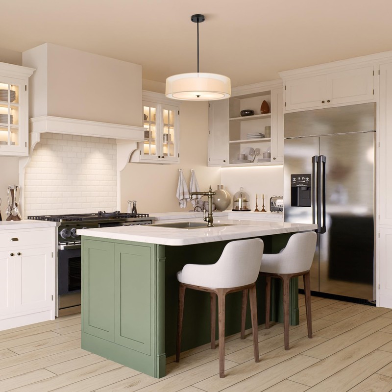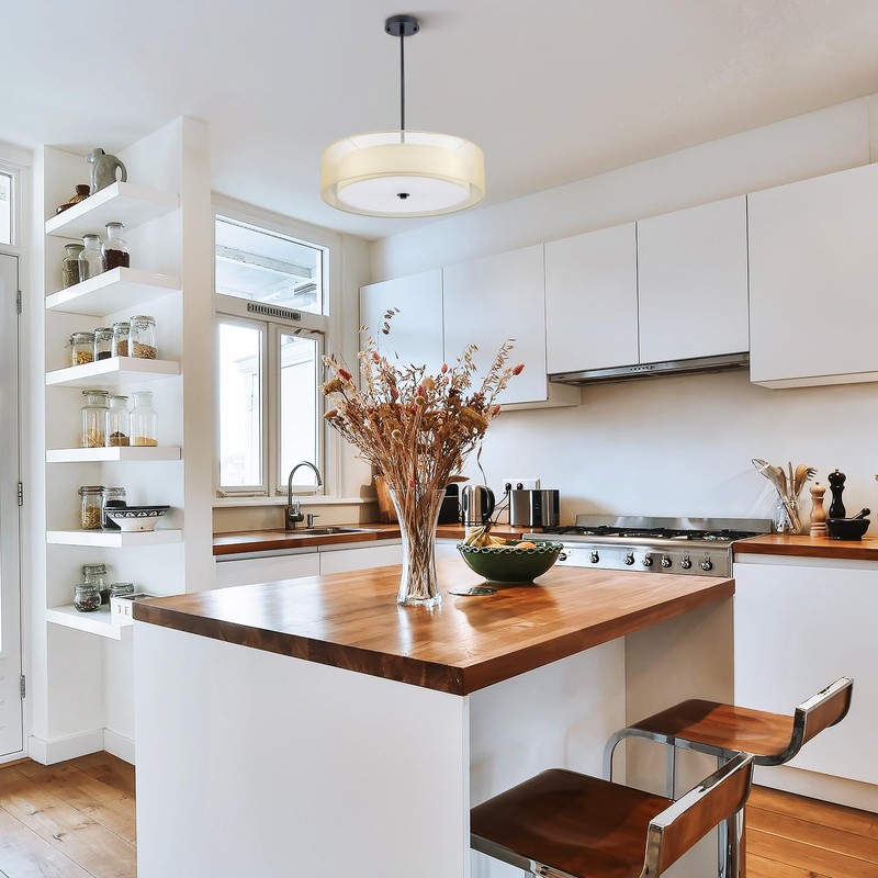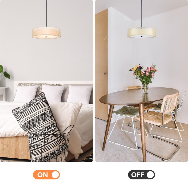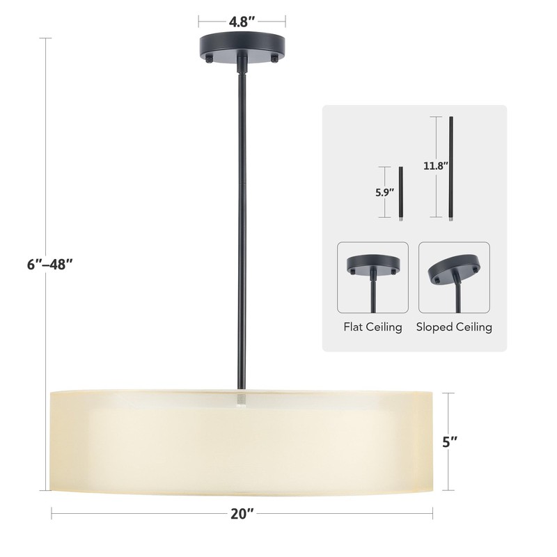 - CONVERTIBLE PENDANT: 3 x 12" downrods plus 2 x 6" downrods creates 8"-50" adjustable hanging length, which enables this drum pendant fixture in brushed nickel to be used as a close to ceiling fixture or semi-flush ceiling light, adding endless elegance to your living space and making a perfect chandelier for dining room, bedroom, kitchen or kitchen island.