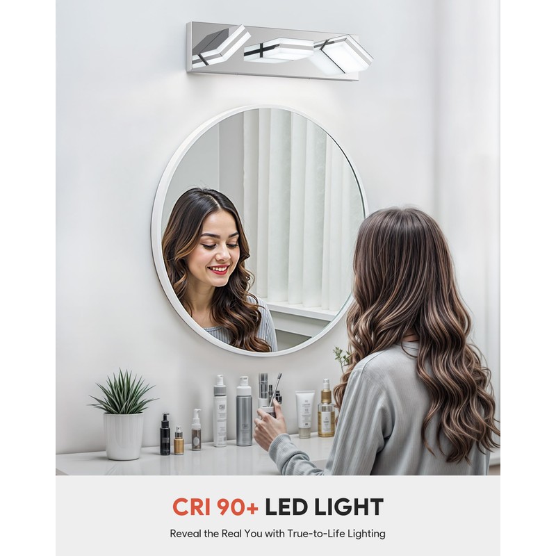 - High CRI Lighting: This 18-inch bathroom light fixture uses energy-efficient LED technology with a 90+ CRI, delivering bright, true-to-life colors while cutting down on energy consumption and costs