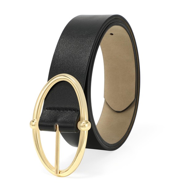 VONMELLI Womens Leather Belt for Jean Pant, Black Waist Ladies Belt for Fashion Dress with Gold Pin Buckle S