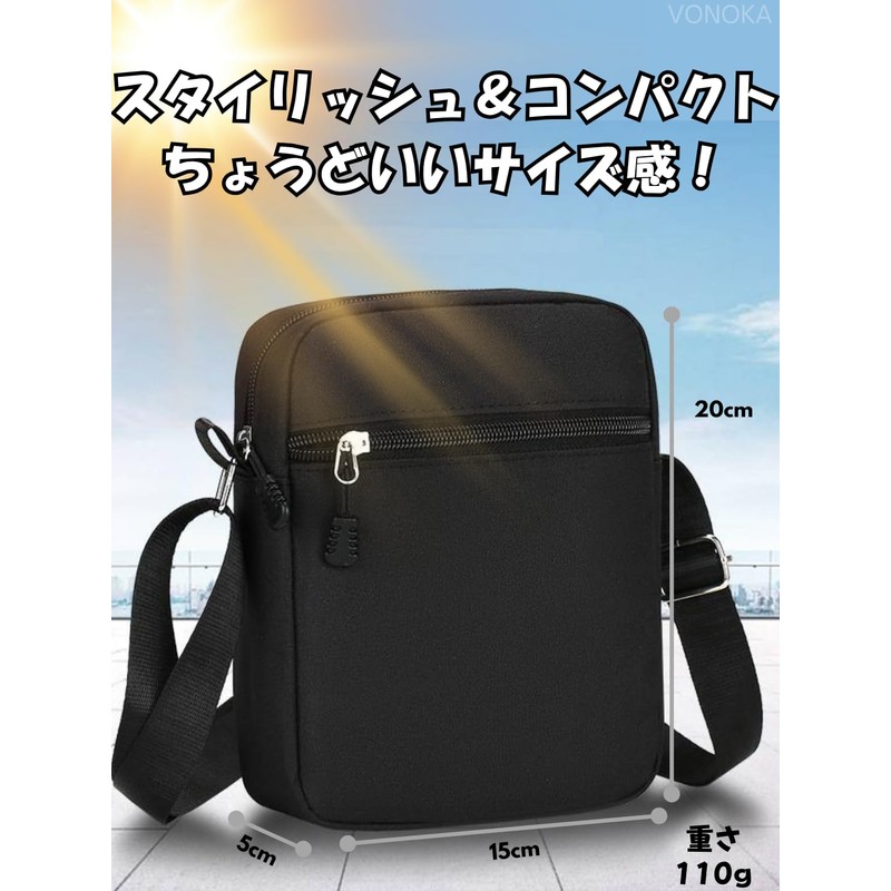 Small but reliable storage capacity. A new staple for the minimalistic era VONOKA Men's Mini Shoulder Bag Lightweight Small A vertical shoulder pouch that allows you to carry your essential items such as wallets, smartphones, keys, etc. With a lightweight design of only 4.1 oz (110 g), it is less likely to get tired even when carrying for a long time, and is suitable for a wide range of occasions, from commuting to work or school, traveling, and outdoor activities. The material is made of Oxford fabric (yuzu cloth) which is water repellent and durable. Resistant to rain and dirt, and retains its shape even during daily use. Adjustable straps & anti-slip for shoulder or cross-body wear The bag does not slide around easily, and fits securely to the body. In addition, the simple plain black design makes it easy to use regardless of age, such as high school students, college students, and businessmen. This item is perfect for those looking for a smartphone pouch, smartphone shoulder strap, and mobile pouch.