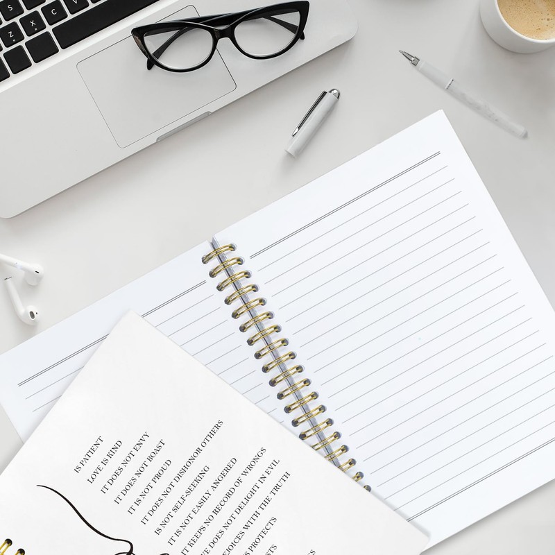 VONTP Christian Notebook,Love is Patient Love is Kind Spiral Notebook,1 Corinthians 13:4-8,College Ruled Notebook Journal for Writing,Christian Gifts for Women Friend Teens,5.5x8.3