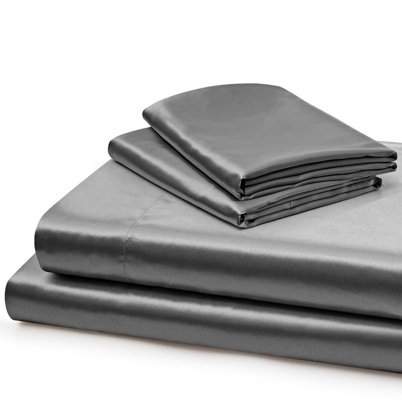 4pc Extra Deep Pocket Queen Size Satin Sheet Set -- Flat Sheet (90"x102"), Fitted Sheet (60"x80"+18-24"), 2 Pillowcases (20"x30")