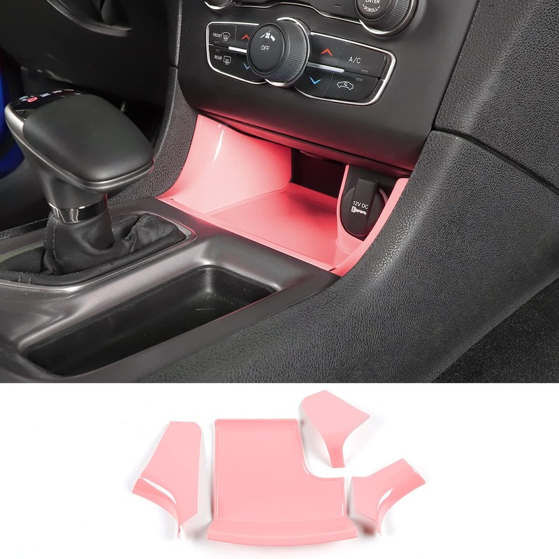 Voodonala for Charger Center Consoles Gear Shift Shifter Storage Compartment Bin Trim Panel Garnish for 2011-2024+ Dodge Charger Interior Accessories,ABS Pink 4pcs
