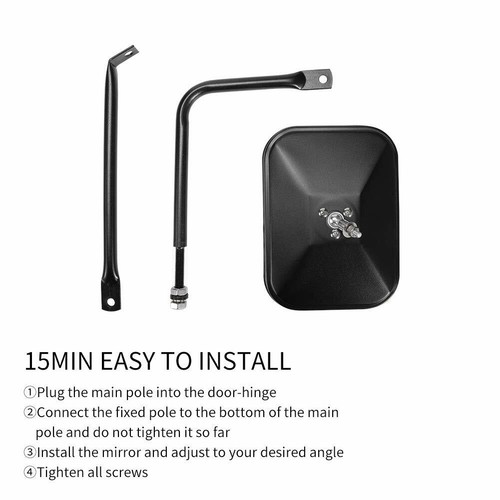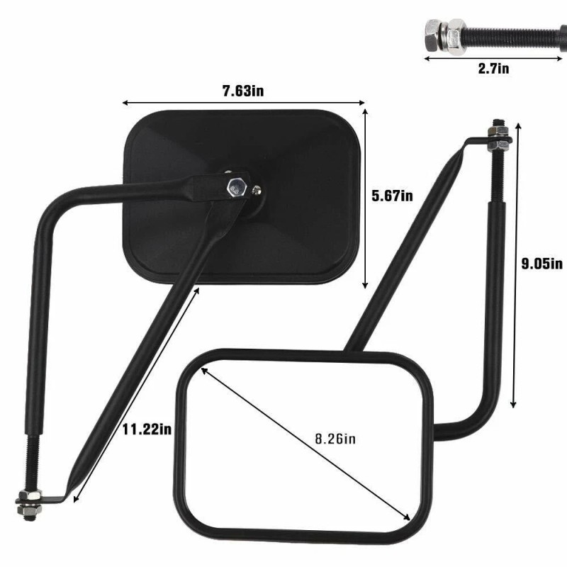 Voodonala Side Mirrors Square Doorless Rear View Mirrors For Jeep Wrangler JK JL JT black