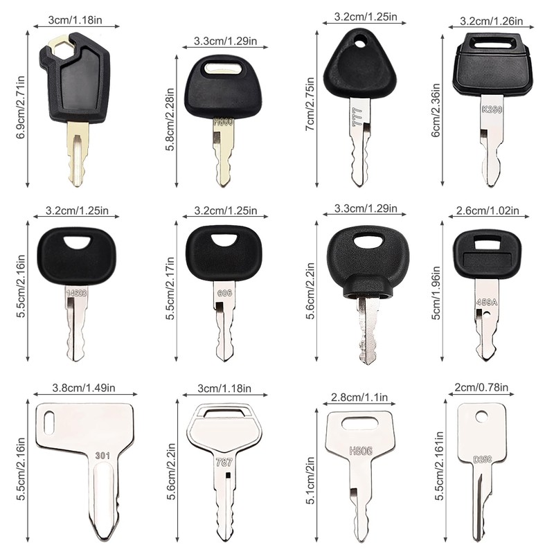 VooGenzek 12 PCS Ignition Keys Kit, Universal Ignition Switch Spare Keys, for Agricultural Excavator Machinery Construction Vehicles Graders Dozers Backhoes