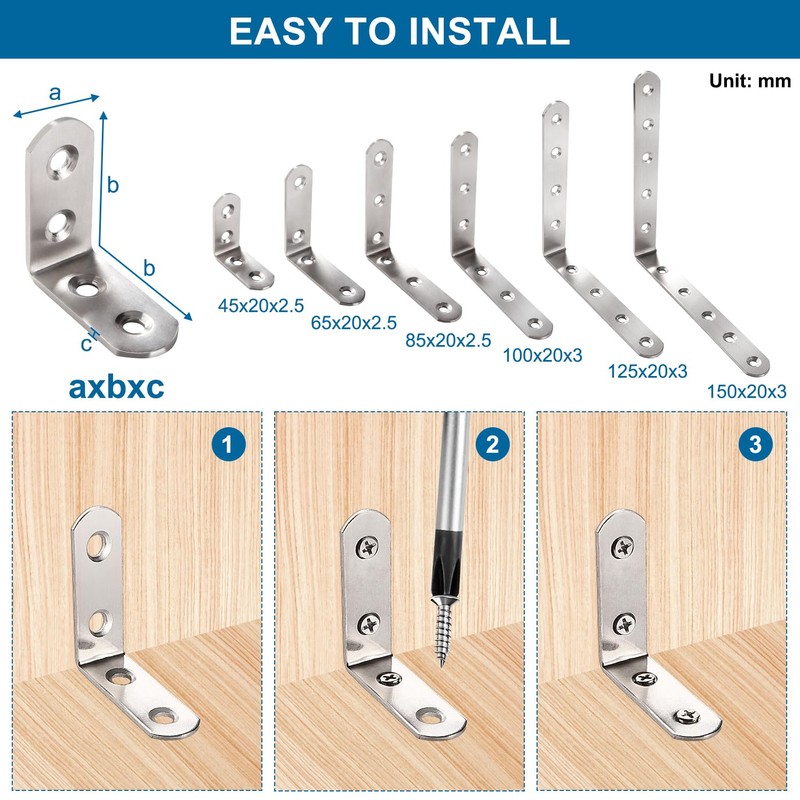 - Premium Material: The L shaped brackets are made of stainless steel, which is sturdy and durable, corrosion resistance, comfortable texture and long service life.