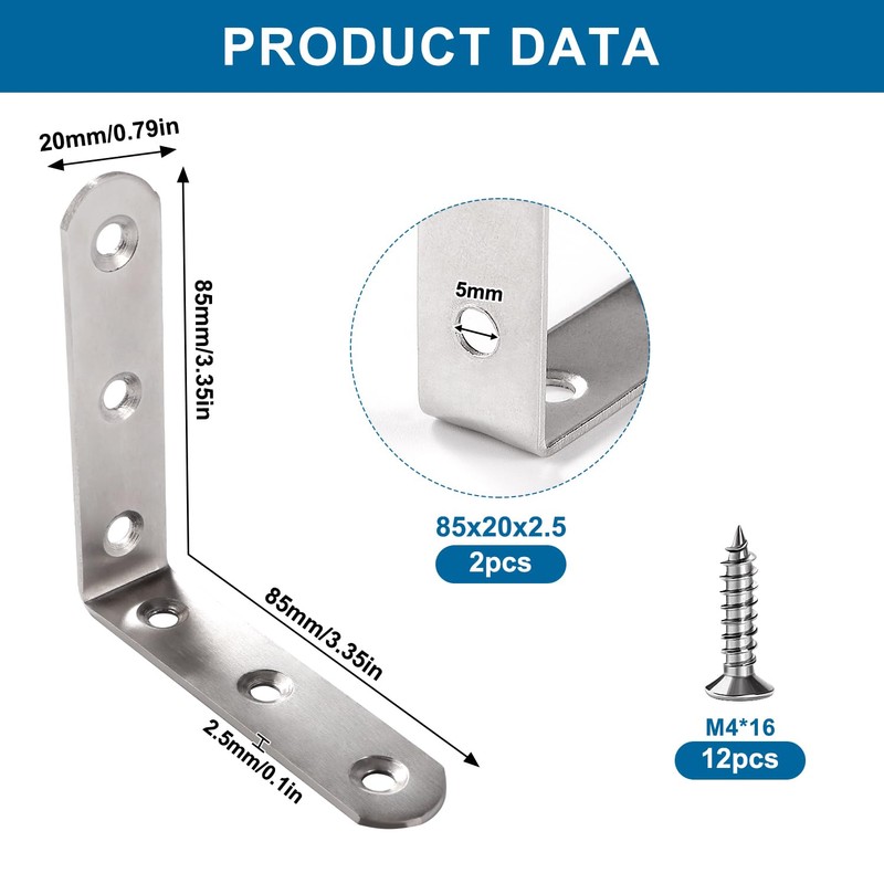 - Package Include: 2 PCS 85x85x20x2.5 mm L Brackets, 12 PCS M4x16 Screws, Sufficient quantity, Enough to meet your daily needs.