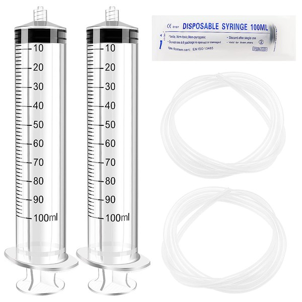 • Package includes: 2 x 100 ml sterile individually packaged liquid injection tubes + 2 x 130 cm transparent plastic hose.