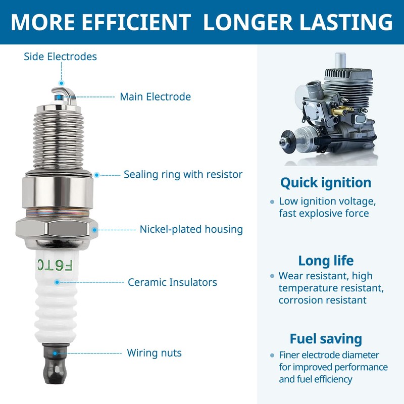 • Wide Applications Such as replacing F6TC engines, generators, lawn mowers, tractors, rototillers, water pumps, go karts, mini bikes, petrol engines, spark plugs.