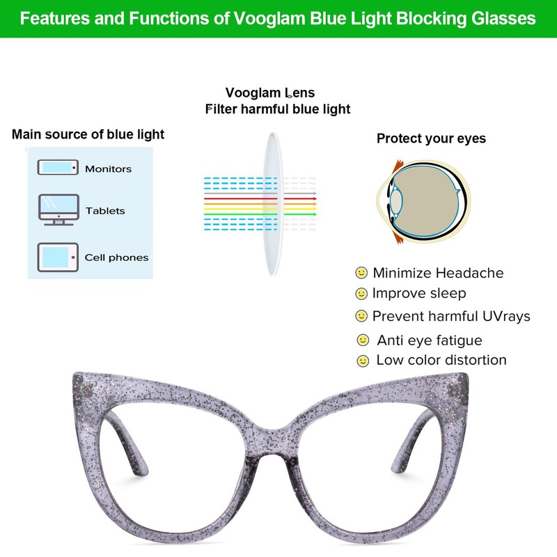 - 【Cat Eye Frame】This frame is designed by Vooglam designer team, Stylish cat eye frames, become your favorite glasses.