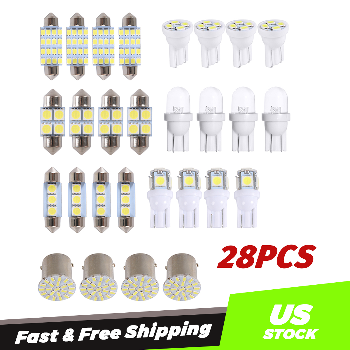 This Interior xenon white LED Kit Will Include the Following bulbs for applications around the interior of your vehicle, such as Dome, Map, Door, Glove Box, License Plates Etc.