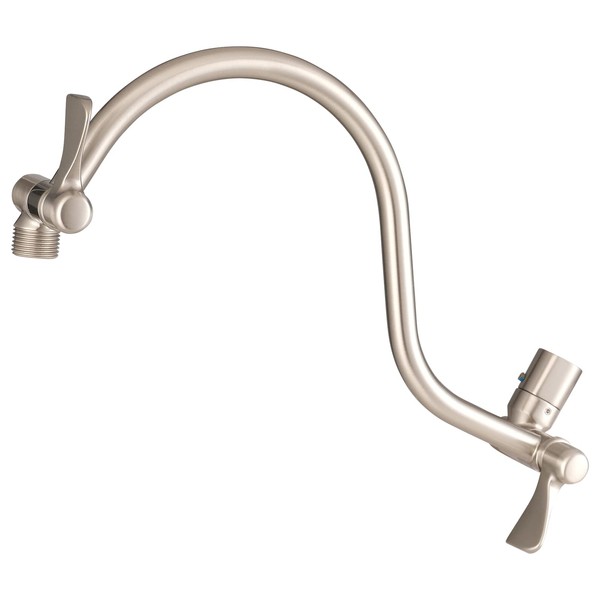 Voolan All Metal Shower Head Extension Arm, 14 Inch Curved Solid Brass Adjustable Shower Arm, Universal Connection Pipe, Flexible Height, Brushed Nickel