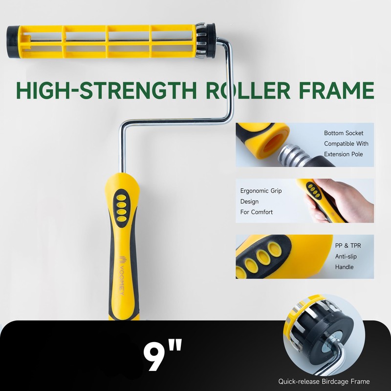 - Quick-Release Spring Lock Design: Features a one-tap roller cover release system for fast changes, ergonomic rubber handle for comfortable grip, and threaded base for extension pole compatibility (pole not included) to reach high areas easily