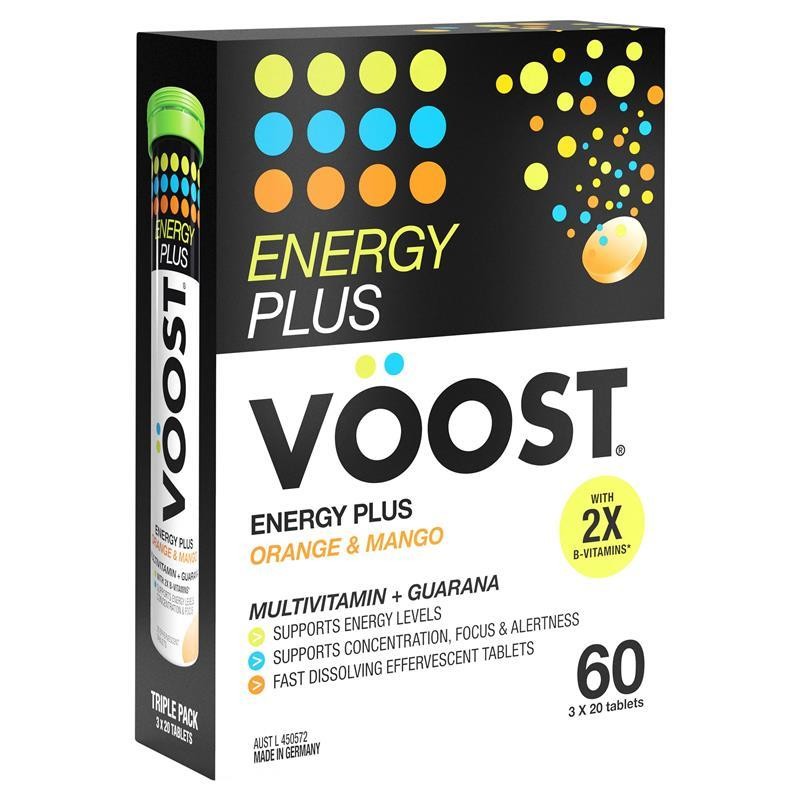 • Uses - Energy Plus Orange & Mango Helps:- Support Energy Production- Support Concentration, Focus and Alertness- Enhance Energy Levels- Increase Mental Endurance and Stamina- Relieve Tiredness and Fatigue- Support General Health and Wellbeing• With 2X B-vitamins*vs. previous Voost Energy Formulation