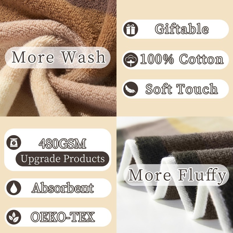 - High-Performance 480GSM Absorption: Built with a solid 480GSM weight and engineered for unmatched moisture absorption. Following showers or baths, they swiftly absorb dampness to deliver an invigorated, dry sensation.