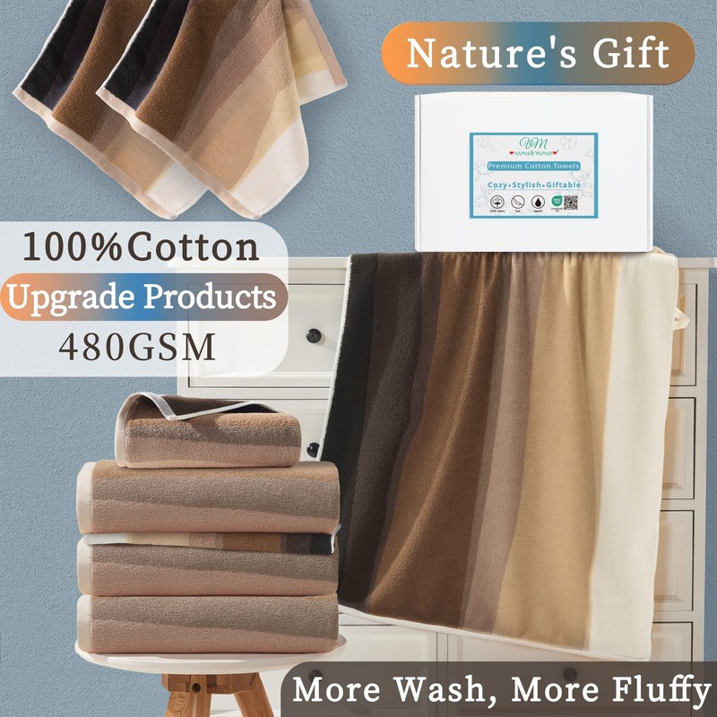 VOOVA & MOVAS Bath Towels Set of 4, 28"x52" - 100% Cotton | 480GSM | Soft | Absorbent | Long-Lasting, Decorative Towels for Bathroom, Brown Bath Towels Gift Set, Beige and Brown