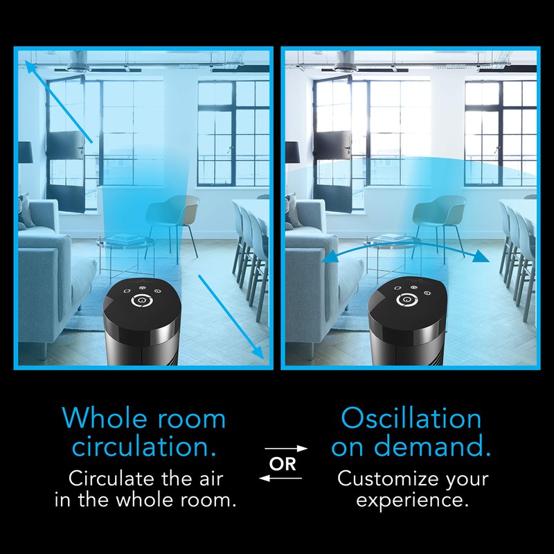 Vornado now offers two distinct ways to be comfortable: both from one beautiful product. Introducing OSCR32 – the Vornado Whole Room Tower Circulator with Oscillation On-Demand. Of course, OSCR32 delivers Vornado’s signature whole room circulation - utilizing stationary, high-velocity airflow to continuously circulate all the air in the room. With whole room circulation, everyone in the room remains cool and comfortable – and that’s only half the story. OSCR32 also offers a second option: oscillation mode – sweeping the room with cooling beams of high-velocity airflow. Designed for smooth, quiet oscillation and embellished with a chromed carry handle, the OSCR32 would be a beautiful and functional addition to any space. There are those that have experienced the constant comfort of whole room circulation. There are those that enjoy the sweeping air experience of oscillation. OSCR32 delivers the best of both worlds. Doesn’t it feel good to have options?