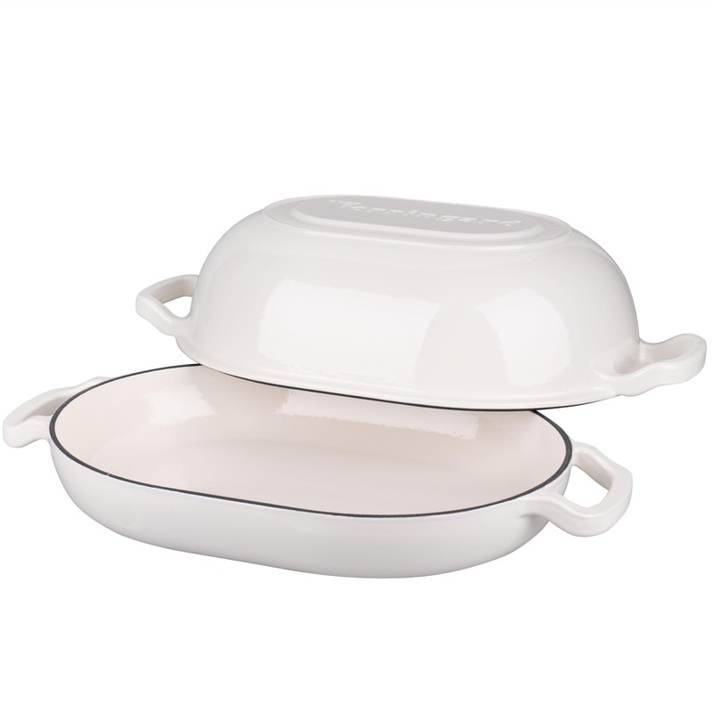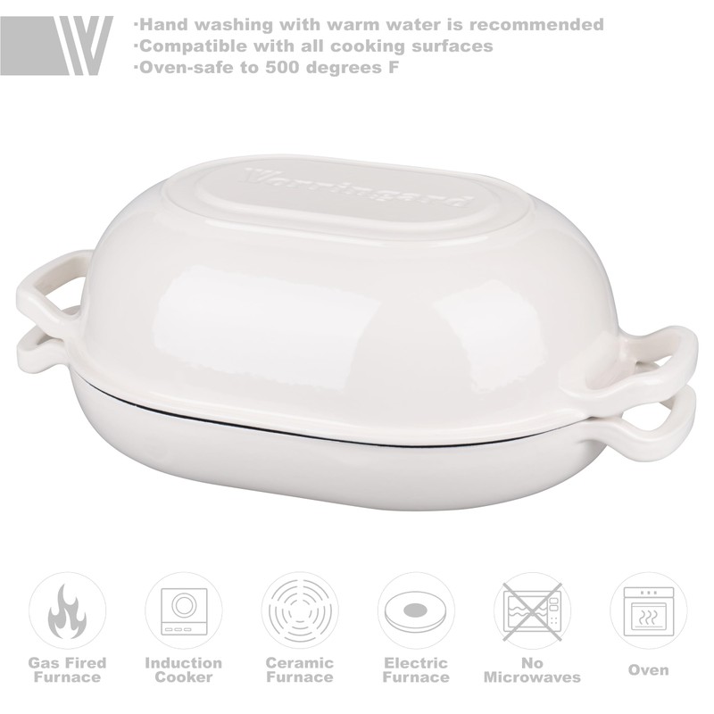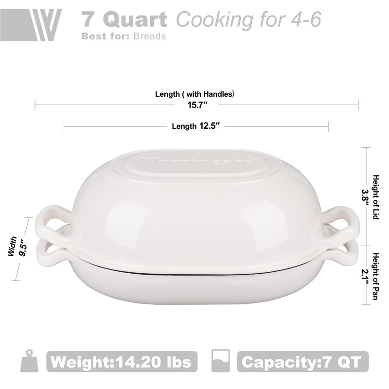 VORRINGARD Enameled Cast Iron Sourdough Bread Oven, Dutch Oven, Loaf Cast Iron Bread Pan for Homemade Bread Baking, Meatloaf Pan with Lid, 7QT, White