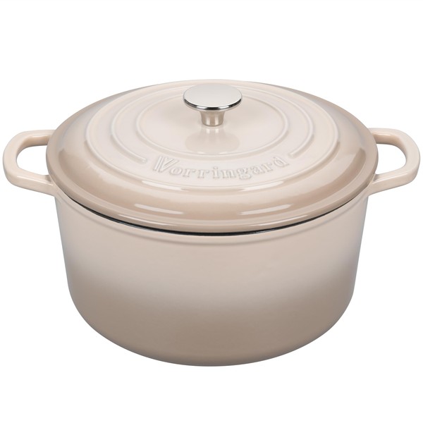 VORRINGARD Enameled Cast Iron Dutch Oven Pot with Lid, for Sourdough Bread Baking, Round Dutch Ovens, 4.5 Quart, Latte