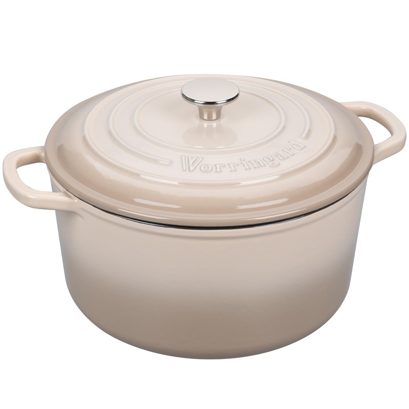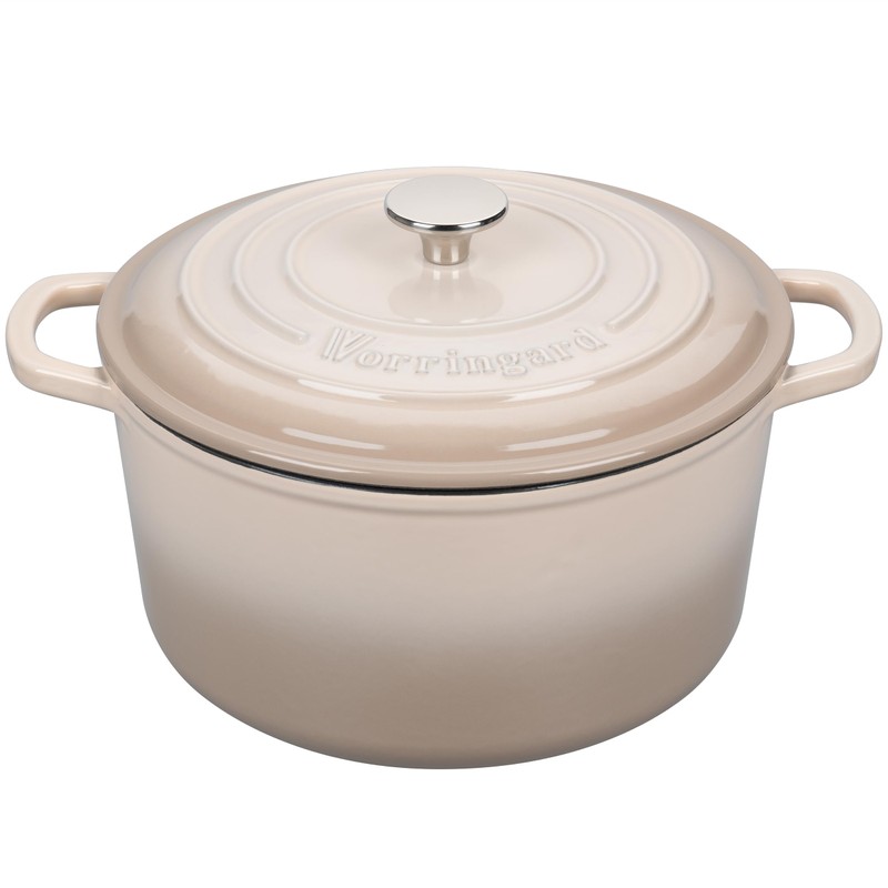 • VERSATILE USE: The Vorringard enameled dutch oven Can be used for slow-cooking, simmering, braising, baking, or roasting a wide range of recipes. Perfect for cooking, serving, moves from refrigerator to stove top or oven to the table