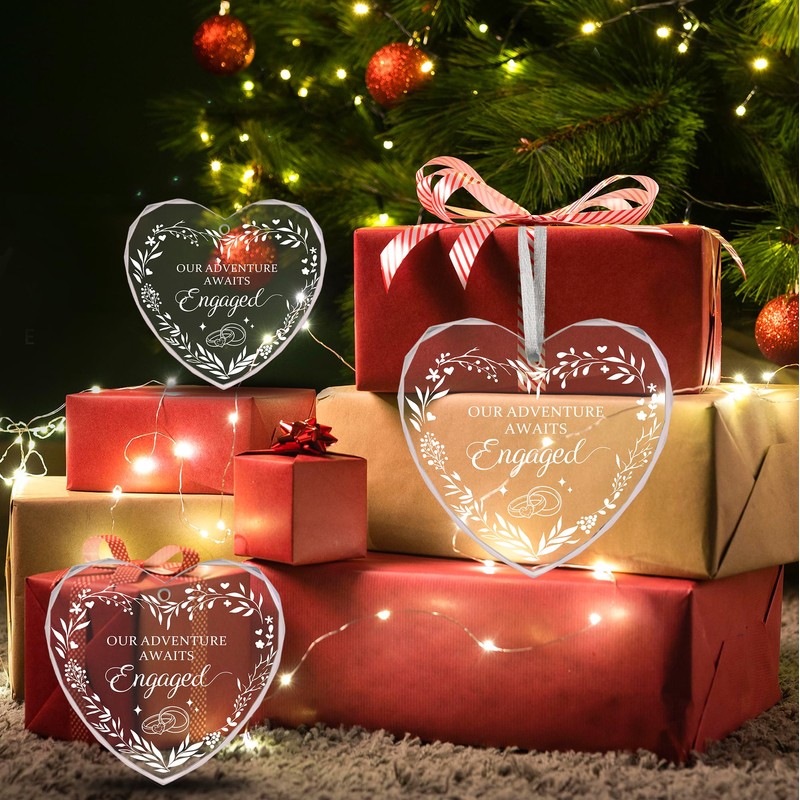 - ALL INCLUSIVE SET: Each set includes beautifully crafted glass ornaments, easy-to-hang ribbons and a charming gift box. This thoughtful packaging not only protects the decorations, but is also an ideal engagement gift for newly engaged couples