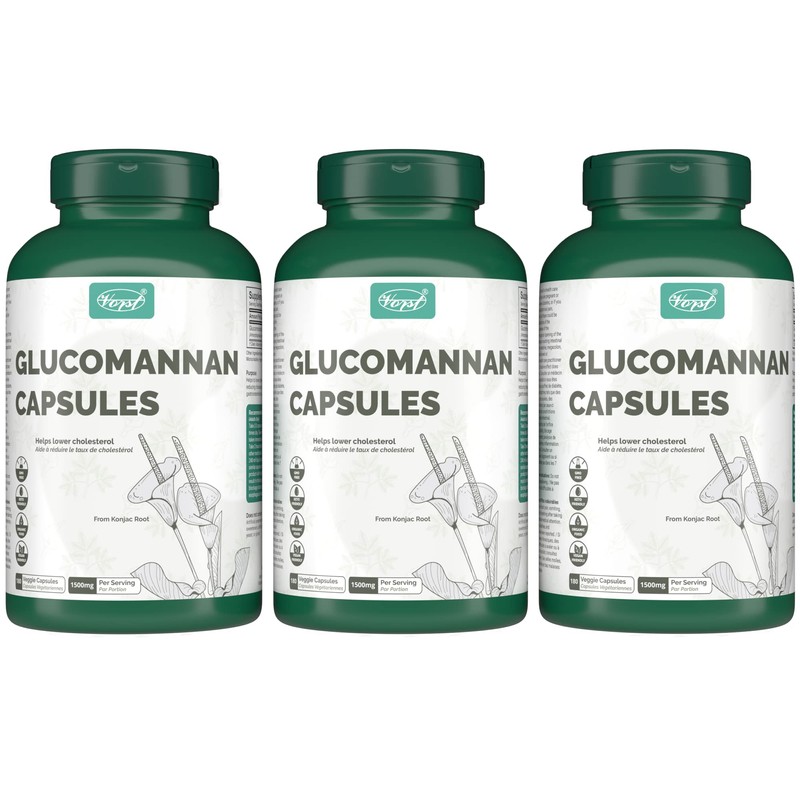 VORST Glucomannan 1500mg Per Serving (500mg Per Capsule) 180 Vegan Capsules | Konjac Root Extract Powder Pills | 3 Bottles