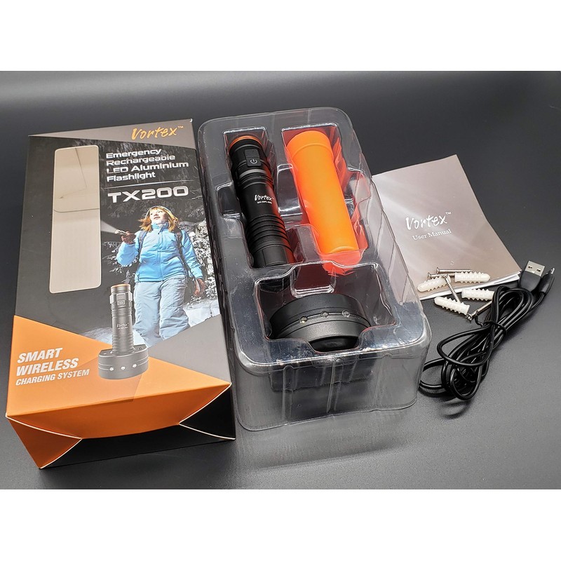Vortex TX200 Emergency Signal Rechargeable USB Wall Mount Charging dock 7/24 Dual Switch Magnetic Base Mini-USB Charging Dimming Tactical Function Handheld Traffic Wand Tripod Compatible Flashlight