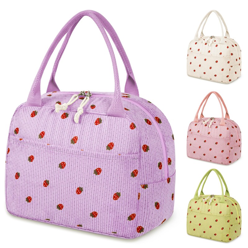 - Soft and durable corduroy fabric: this women's lunch bag consists of a corduroy outer layer, is soft and foldable and can be easily put in the work bag or carried separately. With cherry pattern, very cute and fashionable. Suitable for both children and adults - perfect for work, school, picnics, shopping or beach visit. Foldable, portable lunch box, portable cool bag, lunch bag