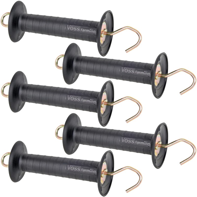 VOSS.farming 5 x gate handle with hook, black, pasture fence handle, wide hand guard with tension limitation