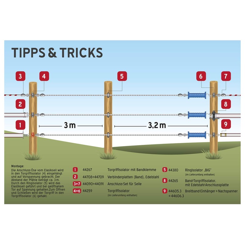 VOSS.farming Electric Fence Gate Handle Set with Elastic Rope, 3.20m/ 6.2m