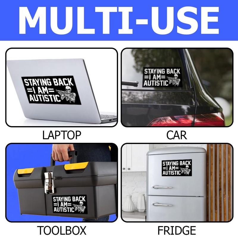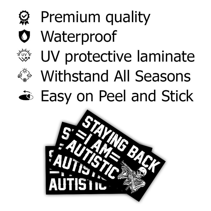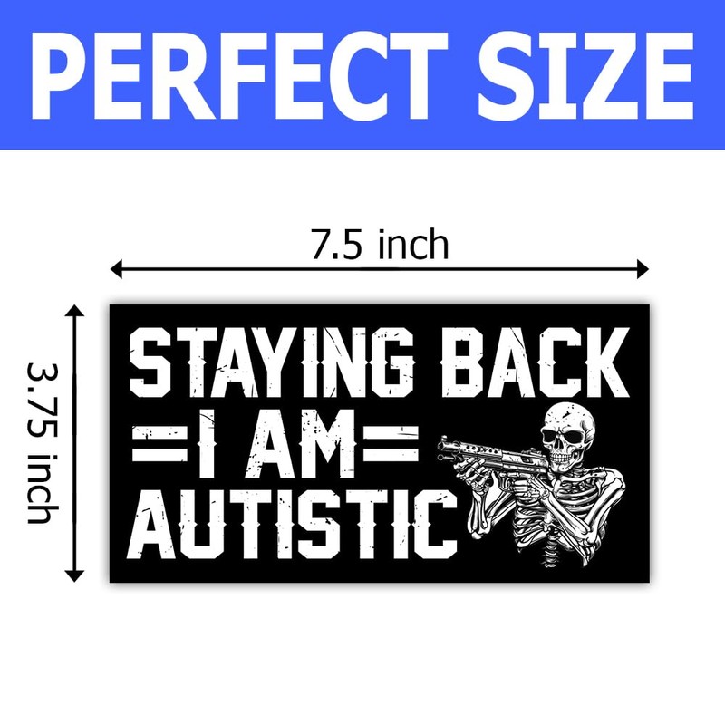 VOTANTA (7.5"x3.75") - Stay Back I Am Autistic Bumper Sticker, Funny Skeleton Autism Awareness Stickers, Blue Ribbon Autism Decal Gag Gifts for Autistic Driver, Decal for Car Truck Window