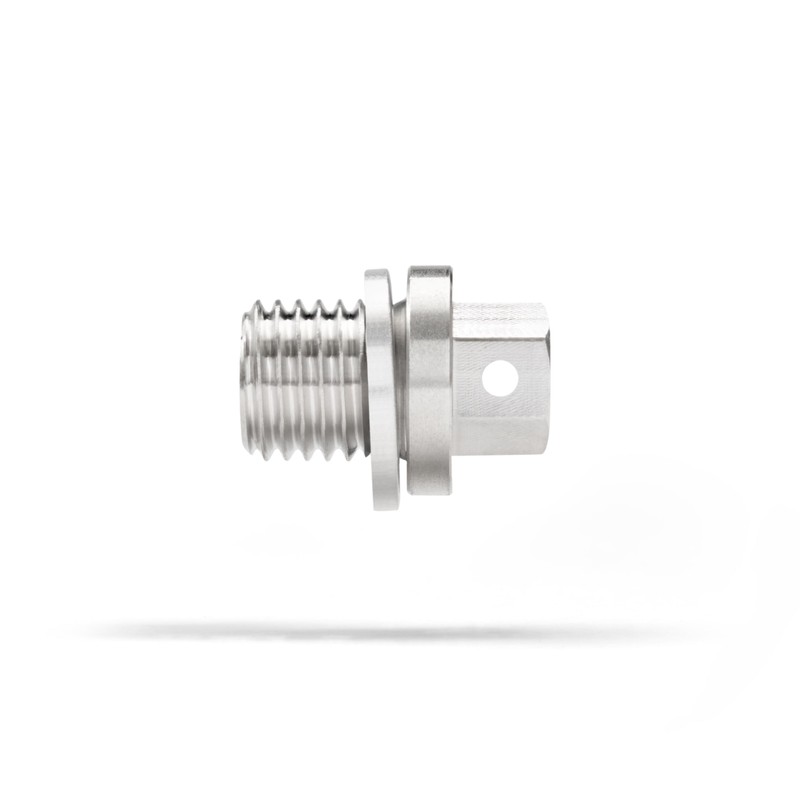 The drain plug market has a plethora of options, most of which are constructed of aluminum. Aluminum is an inferior metal choice due to its poor strength and will commonly shear/snap, leaving you with a broken plug stuck in your oil pan. Aluminum has no place as the material for a drain plug.