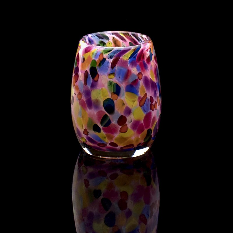 Votive Candle Holder. Hand Blown Art Glass. Pink with Magic Mix -"Cupcake Sprinkles". Made in Seattle. Artist Dehanna Jones