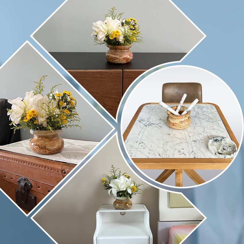 - Solid stone vase-carved from natural marble/onyx, each with one-of-a-kind natural veins