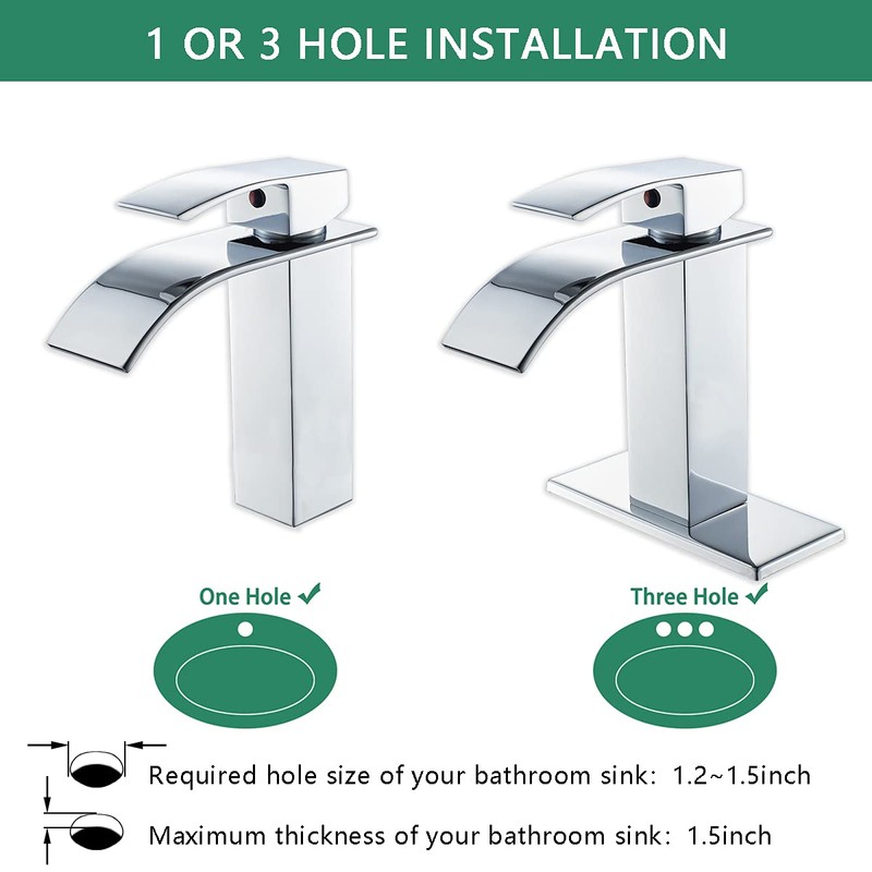 VOTON Bathroom Chrome Faucet for Sink Single Handle 1 Hole with 3 Hole Deck Plate, Rv Lavatory Vessel Faucet