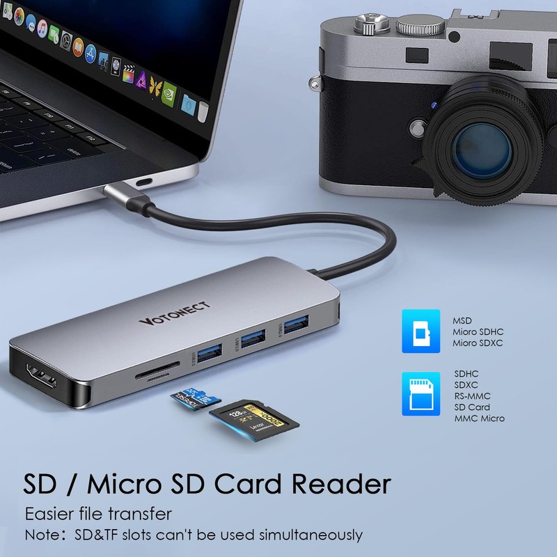 Votonect USB C Hub 10-in-1 with 4K HDMI Adapter, SD/TF Card Reader, 100W PD Charging, 2 USB 3.0 Ports, and 3 USB 2.0 Ports for MacBook Pro/Air, Dell XPS, Lenovo ThinkPad, etc.