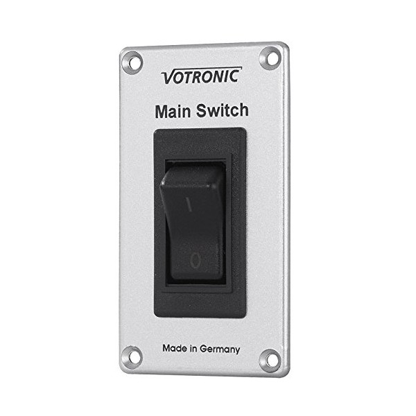 The Votronic Main Switch Panel 20A S (MPN 1295) has been specially designed for use in motorhomes. This panel serves as a main switch for connected consumers or consumer groups. It has a 20 A overcurrent switch which is automatically returned to the 0 position at a continuous current of more than 20 A (thermal trigger).