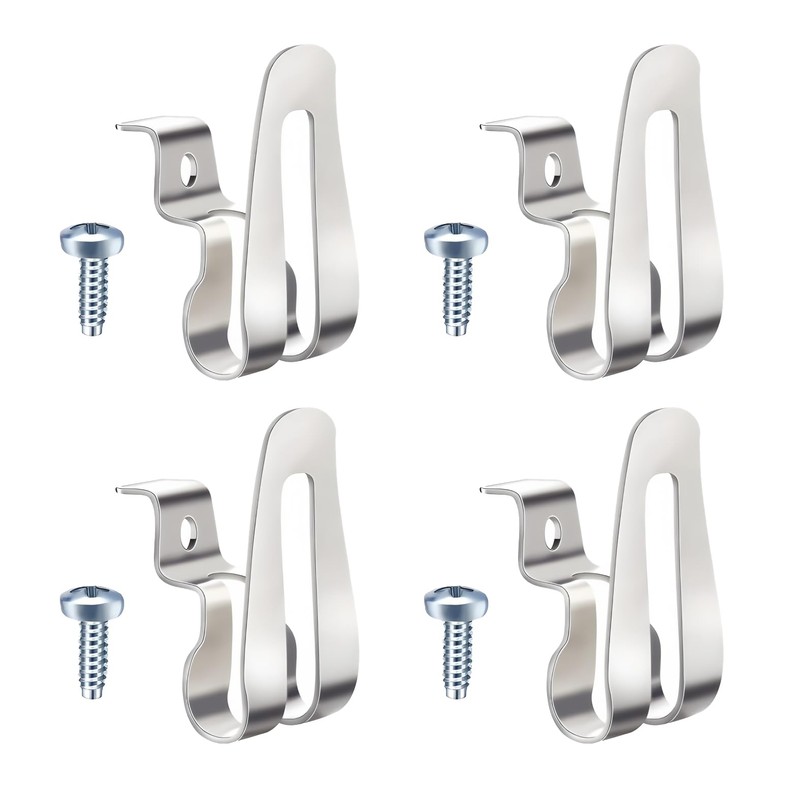 - Packaging Included: The package includes 4 stainless steel tool belt clips, each equipped with screws for secure attachment.