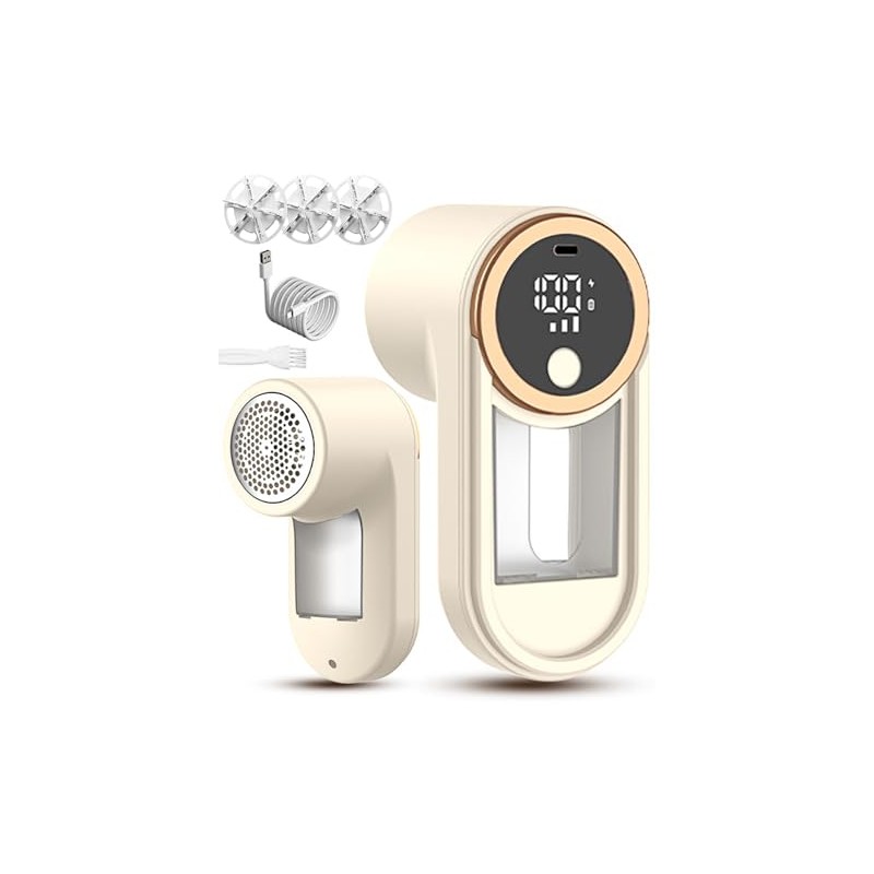 🌟 ⭐ VOURTM Quitapelusas Eléctrico para Ropa Recargable con Pantalla LED, 3 Velocidades Ajustables y 6 Cuchillas Ultra Afiladas, Incluye Cepillo y 3 Repuestos, para Suéteres,Sofás,Mantas,Lana (Color Crema) ⭐ 🌟