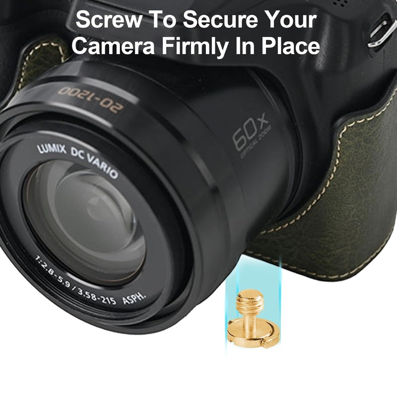 - The camera half bag uses a screw to firmly attach your camera in place. This feature ensures that the half case stays in place and your camera is fully protected from accidental drops.