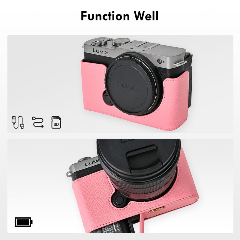 - Convenient to Use With precise cutouts for every button and function of the LUMIX S9, this camera case allows you to operate all buttons and functions while keeping the case on. You can charge the camera freely and flip the camera screen. You can quickly install or remove the battery and memory card without taking off the half case.