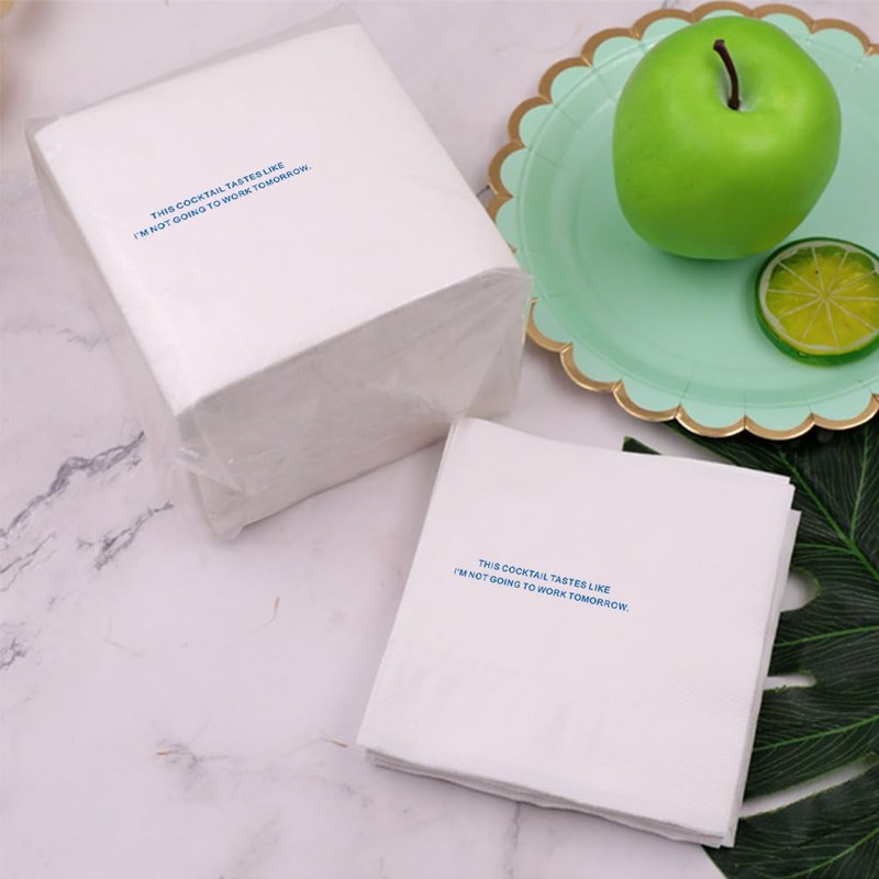 - Transform happy hours with VOWFOO Funny "Not Work Tomorrow" Napkins – 100pcs of 5x5 inch 2-ply humor-packed napkins.