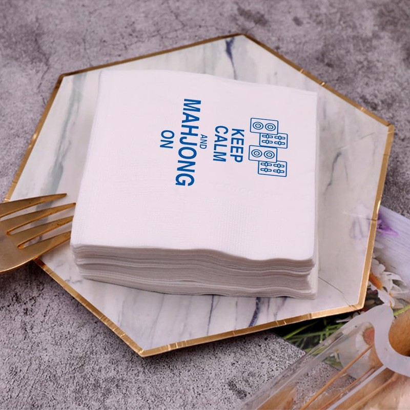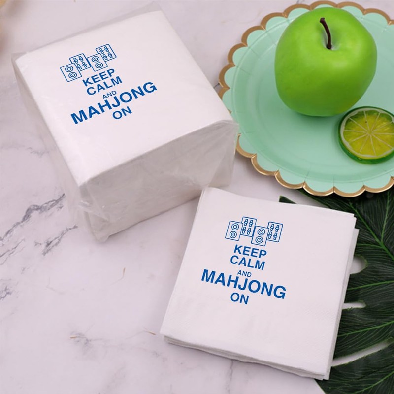 - Enjoy Mahjong casual gatherings with VOWFOO "Keep Calm And Mahjong On" Napkins – a set of 50 5x5 inch 2-ply disposable napkins.