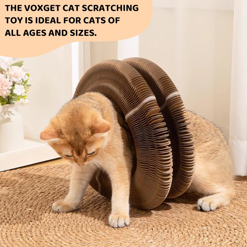 VOXGET Magnetic Organ Cat Scratch Board for Claw Sharpening and Fitness Toy, Kitty Kurlz Foldable Cat Interactive Toys with Balls with Bells for Indoor and Outdoor - Brown