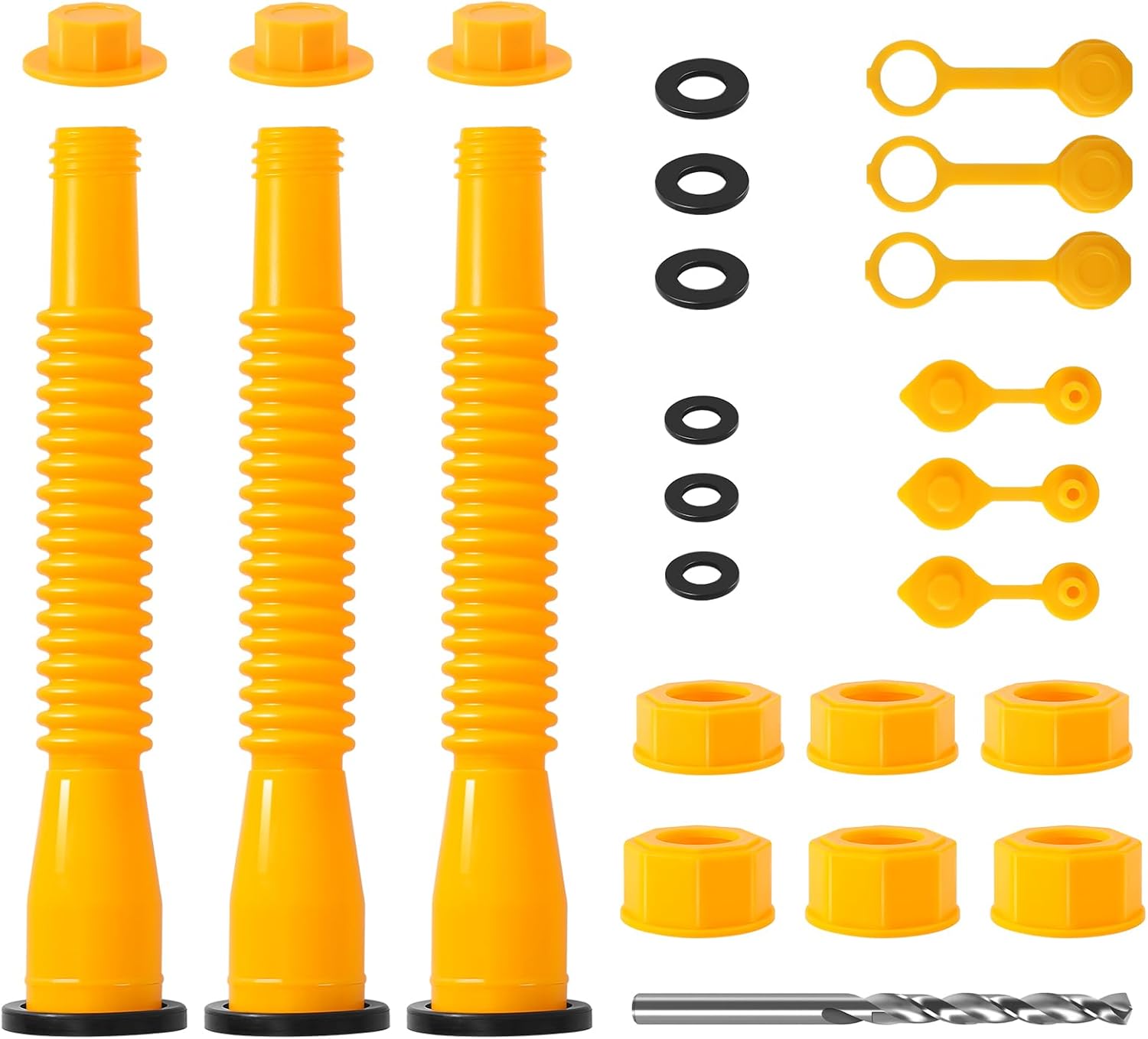 3KIT Gas Can Spout Replacement, No-Spill Design Gas Can Nozzle with Flexible Nozzle Fit MOST 1/2/5/10 Gal Tank Cans, Gas Can Nozzles Old Style, Fuel Can Spouts, Vent Caps, Rubber Gasket, Drill Bit