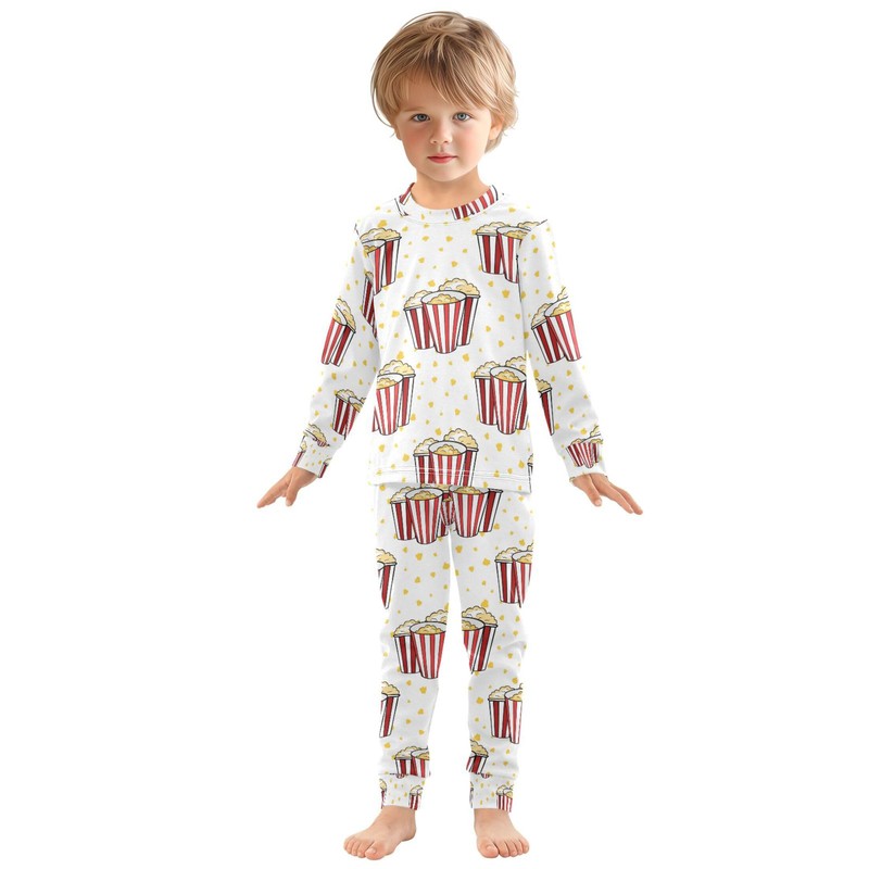 Vozoza Cartoon Popcorn Pajama Sets Long Sleeve Top with Pants Cotton Soft Sleepwear 2 Piece Pjs Set Size 4T