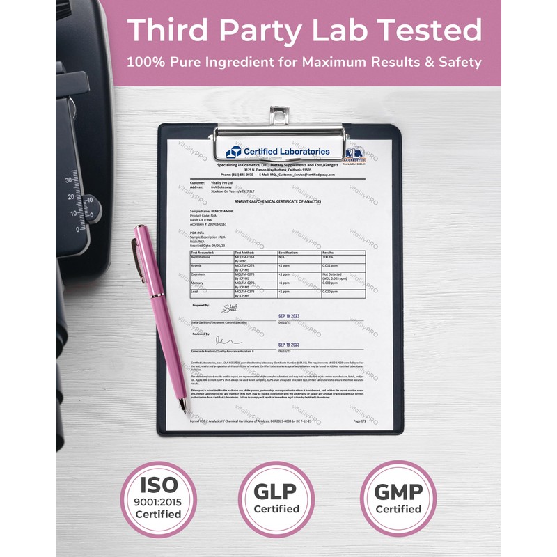 - Third Party Tested: Our Vit B1 supplement has been independently verified by a third-party lab to ensure over 98% purity and superior quality. Our vegan-friendly dietary supplement has zero GMOs, artificial colours, preservatives, and flavours.